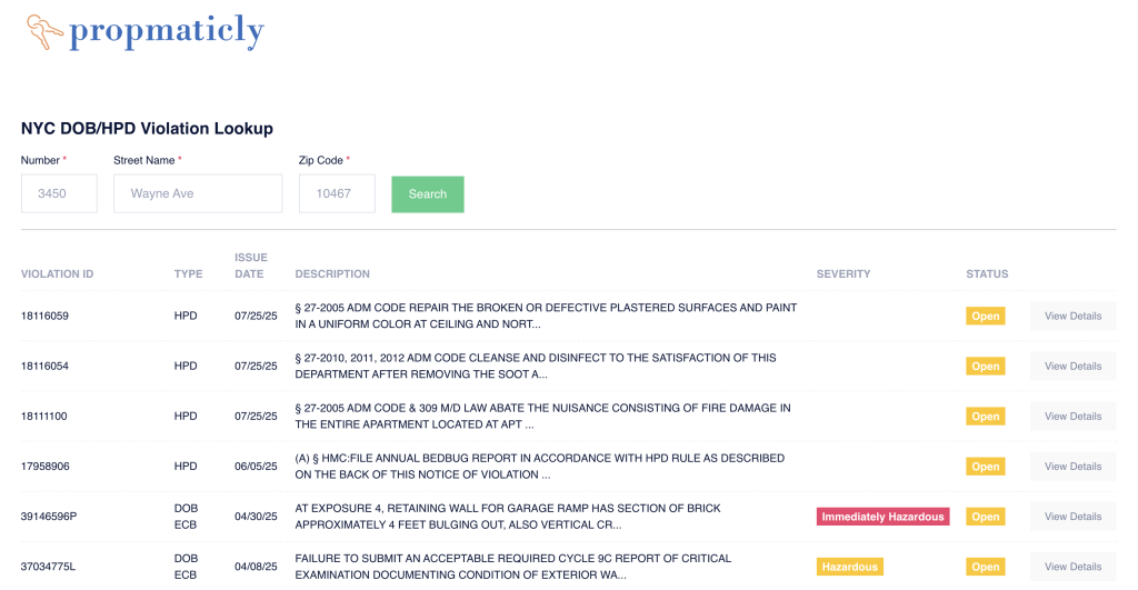 If you’ve ever been frustrated by the DOB’s outdated systems, you’ll love how simple Propmaticly makes compliance lookups.